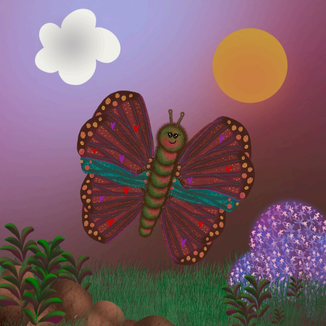 Ik besloot iets te gaan schrijven met het metafoor ‘de transformatie van rups naar vlinder’ op de achtergrond en deze te combineren met het feit dat alles altijd verandert. Het leven in het algemeen, wij mensen, de dieren en zelfs de planten. Deze continue verandering leren zien en leren om mee te bewegen zijn waardevolle lessen die ik zelf heb ontvangen. Ik besloot een vorm te ontwikkelen om deze diepgaande lessen op een kinderlijke, lichte en kleurrijke manier te vertalen.