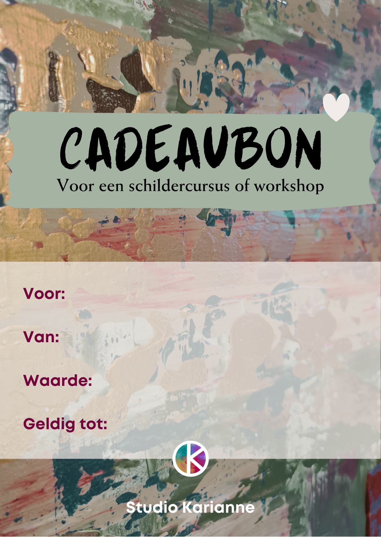Geef een waardevolle ervaring cadeau: een schilderles, een volledige schildercursus, een opdracht voor een schilderij dat ik voor de ontvanger maak, of een combinatie daarvan.